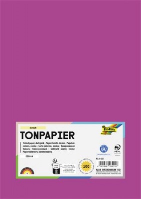 Színes papír, A4, 130 g, 100 lap, FOLIA, sötét rózsaszín